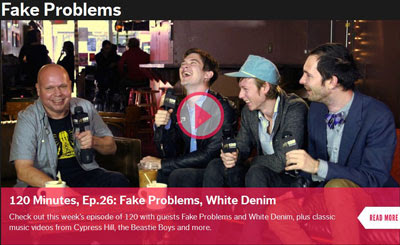 May 25, 2012Fake Problems recently met up with Matt Pinfield for a hilarious interview on 120 Minutes. Fans of the band have to check it out. It’s fantastic! Click here to view.