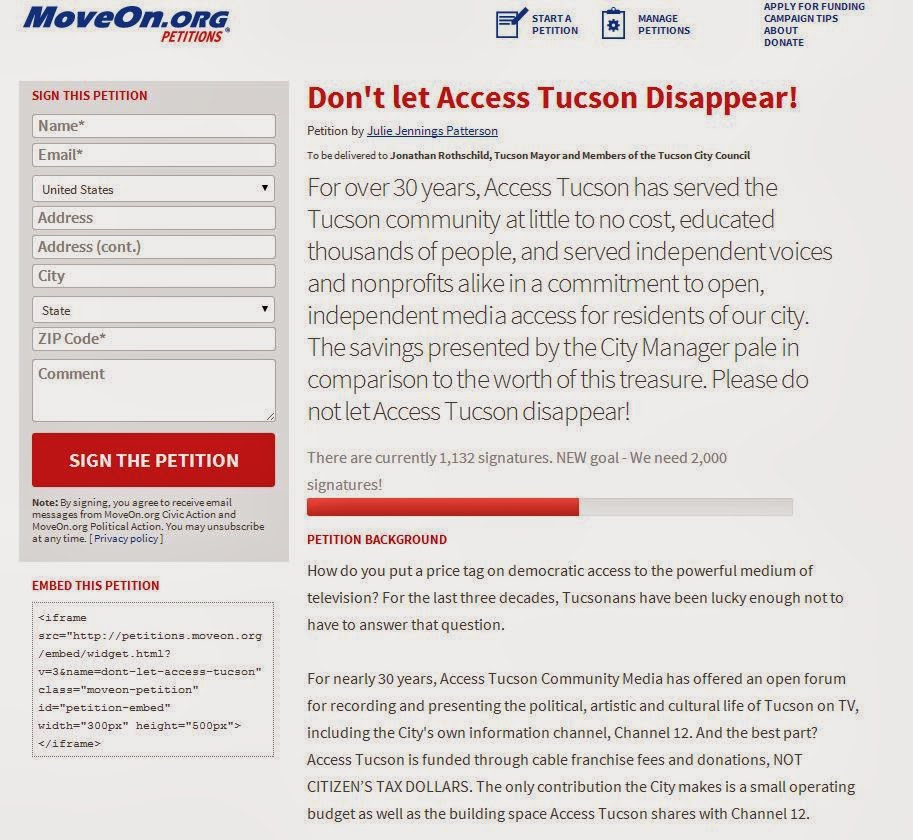 Access Tucson, the local station that’s been broadcasting the show for the past couple of years is in danger of closing down unless there is enough public support (outrage) and SIGNATURES to show the local government how important the station is to the people. Please take a moment to sign this petition so that this amazing public platform doesn’t disappear.