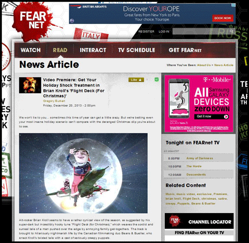 December 23, 2013NY-rocker, Brian Kroll’s unbelievably entertaining, stop motion/puppet, Christmas (with-a-twist) music video, “Flight Deck (For Christmas),” just premiered on FEARnet.com and it’s already turning heads all over the internet! Who would have thought one of the best music videos of 2013 would drop on December 20th?